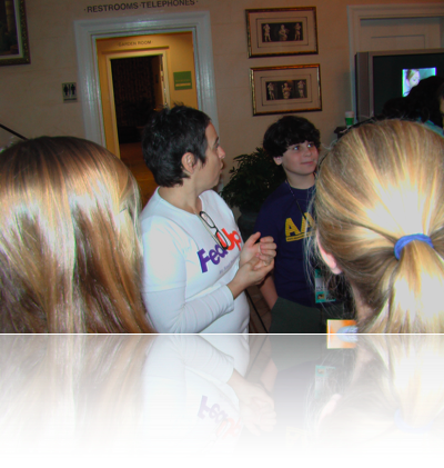 OK: Now we're going from concept to actual meet & greet. Charlotte, Eli and I meet for press sign-in at 6:30 and take our place in the "press pen." It's hard getting in there, 'cause they're getting interviewed all over the place. Now we wait, rehearsing questions, reviewing the press tip sheet. Whoa--here they come. Oh, are we blessed--the Press Office folks escort the stars right to the Team, and Eli and Charlotte score interviews with all the big guns: Tim Matthiesen & wife Megan; Sienna Miller and Guy Pierce of this evening's film "The Factory Girl"; Christopher Lloyd; and even Jack Johnson! Wow--this is incredible. The stars appear to enjoy talking with the Teen Team, who are genuinely excited and have good questions. Some of the other news media reps in the area are jealous.