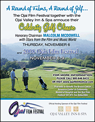 Sophie and Harrison start off the Festival with a visit to the Celebrity Golf Classic at the Ojai Valley Inn & Spa, where they conversed with film stars Malcolm McDowell, who hosted the event, and actor Bruce McGill. After a brief reconnaissance mission, they were off to view and review films at the festival proper!
