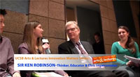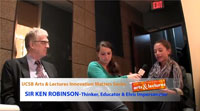 On Tuesday, February 21, 2012, Alex, Dia, Oli and Sarina attended a special Q&A with Sir Ken, co-sponsored by the Orfalea Foundation and Lynda.com, held at the Pixel Cafe, part of Lynda.com's Carpinteria HQ. There the films were shown, and an extended discussion about education in person and online. Later that evening, Sir Ken lectured, answered questions and signed books at UCSB's Arts & Lectures "Innovation Matters" series, held at Campbell Hall. As the clock struck 11 pm, the team got to talk directly with Sir Ken (presented in parts: 1, 2, & 3) for almost as long as the event lasted at the Pixel Cafe.